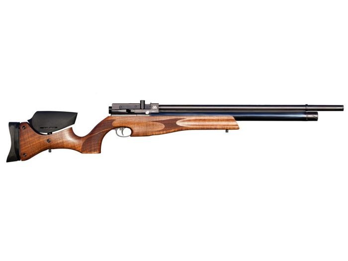 This XS Ultimate Sporter version offers more than just an upgraded 40 (.25), 55 (.22) and 60 (.177) shots per fill, with shot power you can further tune using the built in external power adjuster dial. It also has a rich walnut stock and detailed workmanship that would not look out of place hanging on display in your living room. The fine Minelli stock has tactile checkering on the forearm and grip for precision control, an adjustable buttpad, cheekpiece with soft touch coating, integrated sling mounts, and an accessory rail. Rounding out the features are the silky smooth sidelever, integrated air cylinder pressure gauge, and 2 included 10 shot indexing magazines.