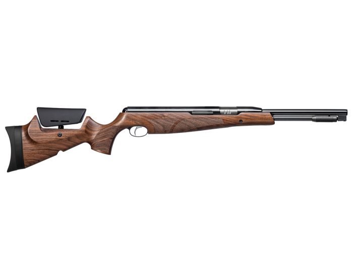 This model of the air rifle gives you a handsome stock in walnut, and you’ll get a solid hold because of the laser cut texturing on the forearm and grip. You’ll also get a ball joint that lets you get total rotation and tilt adjustment, a fully adjustable cheek piece that you can adjust both horizontally and vertically, and a 3 axis rubber buttpad that gives you the exact fit you need.