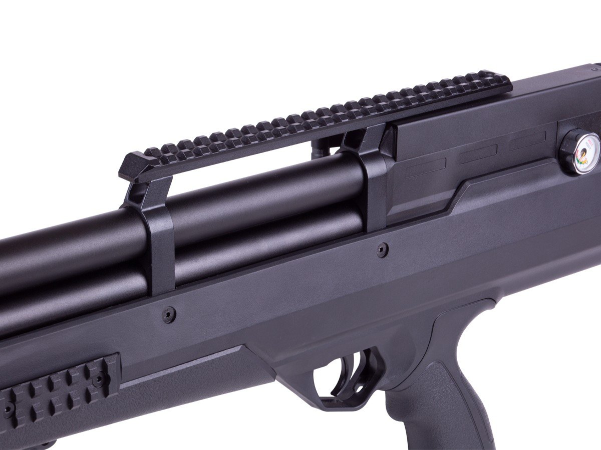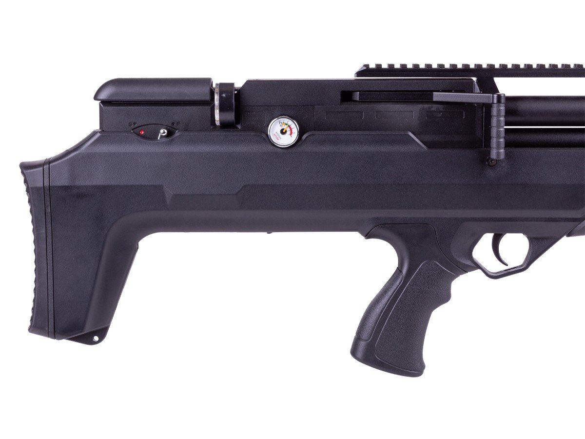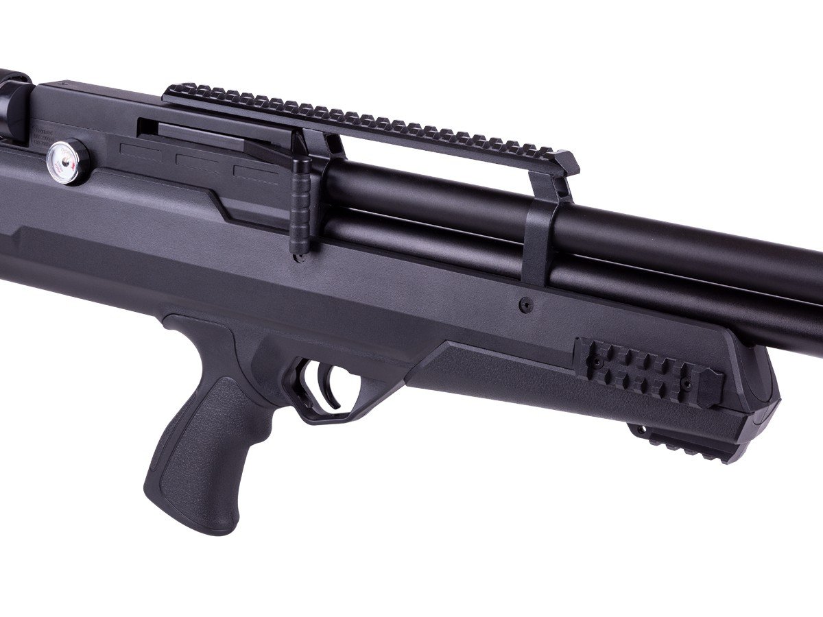 Normalmente, pagaría tres o cuatro veces más para obtener la precisión y las características que encontrará en este rifle de aire comprimido bullpup, razón por la cual todos hablan de él. Con el conector macho de desconexión rápida en el extremo y el manómetro de llenado a la izquierda y el manómetro de regulación a la derecha, no tendrá ningún problema para llenar este rifle ni para supervisar su rendimiento.