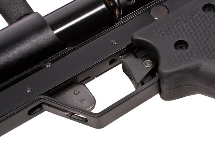 Being a PCP (pre-charged pneumatic) rifle, a pump or scuba refilll clamp must be purchased or you will not be able to fire your rifle. We recommend the AirForce pump to insure you get the maximum power out of your rifle with out having to lug around a Scuba tank or take it to get charged constantly after each outing when using the Scuba Refilll Clamp with Adapter. Both are excellent ways to charge your guns pneumatic system and get it ready for shooting. The Talon has many other highlights, like the easily adjustable power reel that is located on the barrel, a two-stage adjustable trigger and automatic safety as well as the ergonomic feel and overall light weight.