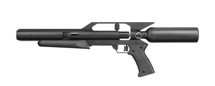 The AirForce TalonP PCP pistol is heavier than most air pistols and is exceptionally reliable and accurate. The Talon P is unique in the way most pistols are held. A comfortable hold is with one hand on the pistol grip and the other holding the top of the scope. If you assume a sitting position, you can hold the grip with one hand and rest the gun’s forearm on your off hand’s forearm. These two positions will draw the pistol much closer to your eye, and you can mount a rifle scope on the TalonP air pistol. A pistol scope could also be mounted, but there are more choices among rifle scopes. The AirForce TalonP air pistol is one of the most powerful air pistols made today. Delivering over 50 ft-lbs of energy in .25 caliber, the TalonP is the ultimate compact hunting weapon and is easily carried in the field. Take small and medium quarry with this airgun at distances you’d never normally use with any other air pistol. However, power is nothing without accuracy, and the AirForce Lothar Walther barrels are known for being deadly accurate. The TalonP is equipped with the same 12″ Lothar Walther barrel available for their hunting rifles, so you can expect to get the same small groups. This pistol cannot be fitted with other AirForce barrels, as the valve has been tuned especially for .25 caliber. The power wheel lets you adjust your velocity for whatever distance you shoot and for the type of critter you want to hunt. With 43.2-grain pellets, you can expect a max velocity of 760 fps. With a 25-grain pellet, you can expect a max velocity of 850 fps. The TalonP now comes with the new Spin-Loc air tank, making refilling your tank much easier since you won’t have to remove the tank from your gun. Please note that the spin-loc tank can Only be Used With Compressed Air or Dry Nitrogen Gas. Features: