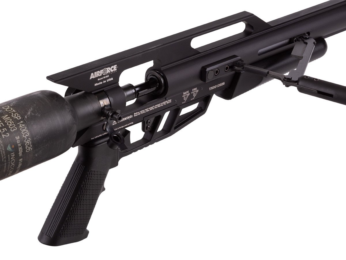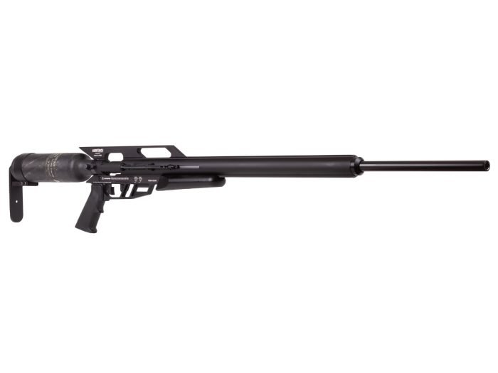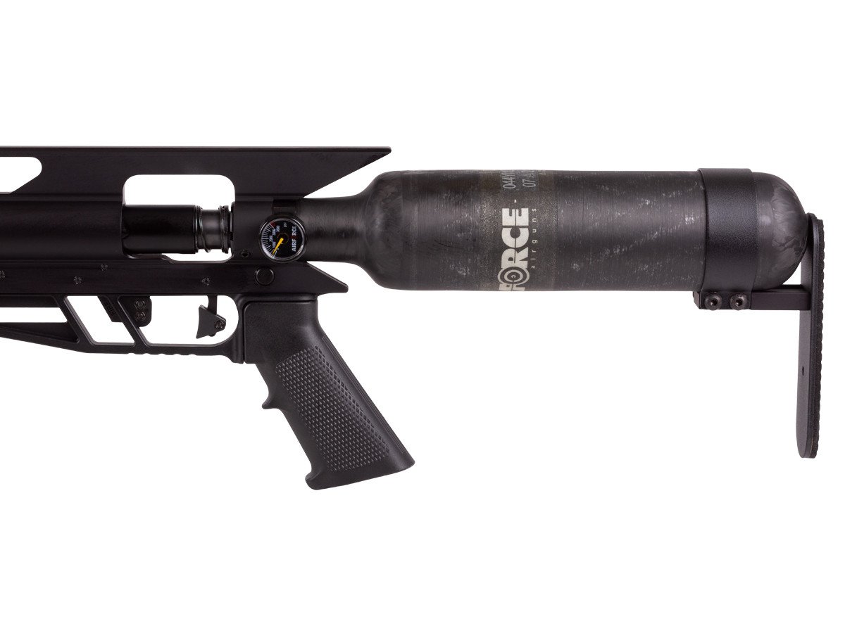 The AirForce Texan with carbon fiber tank gives you a lighter air rifle featuring upgraded TX2 valve technology that also boosts the power. The new version includes a 475cc carbon fiber air bottle, and weighs in at only 6.12 lbs., which is around 20 percent lighter than the standard version of the Texan, but with muzzle energy of up to 754 fpe in .457 and 800 fpe in .50.