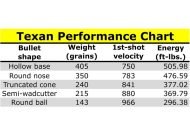 Airgun writer Tom Gaylord did some velocity testing of the Texan. See a chart of his findings in the supplementary images. The AirForce Texan delivers more power than any other production air rifle: .45-caliber bullets leave the muzzle at 1000 fps (up to 500+ ft-lbs. of energy). Load, cock, aim, squeeze and deliver jaw-dropping power. An entire world of hunting opportunities has just opened up to you!