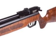 The Benjamin Marauder Semi-Auto with wood stock brings you the classic looks and legendary accuracy of the Marauder but upgraded with the rapid-fire capability of a semi auto action. Although this airgun looks and feels like the Field and Target version it’s built off of, don’t be fooled. Most of the interior is improved and re-engineered, including the new version of the 10-shot magazine. If you’re looking for a seriously stable shot string with a hammer spring screw that adjusts the power, you’ll find it here. How fast does this air rifle shoot in semi auto mode? As fast as your reflexes. A fast shooter can get about 300 rounds a minute cyclic rate, which is great for fast follow up shots if you’re hunting small game. You’ll get about 50-60 shots at about 900 FPS (around 22 FPE) with the factory power setting, or 30-40 shots at about 950 FPS (over 28 FPE) at full power. The full barrel shroud makes this one of the quieter airguns in its class, and there’s a Picatinny rail for adding optics. This airgun gives you high class features, distinguished looks, and quality workmanship without the high price tag. The semi auto mode will help you shoot targets or small game with equal ease and accuracy, and it’s a blast to shoot. If you’re ready to take the Marauder shooting you know and love to the next level with semi auto fire, upgrade to the Benjamin Marauder Semi-Auto with wood stock today.