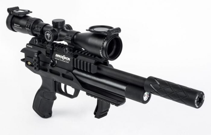 The Brocock Ranger XR measures just 600mm with the folding stock deployed and only 400mm with it retracted. It weighs a feather weight 2.5kgs (5.5lbs) yet will deliver around 40 shots in .177 and 45 shots .22 at 12 ft. lbs. The FAC version of the Ranger XR will deliver between 18 and 20 ft/lbs.
