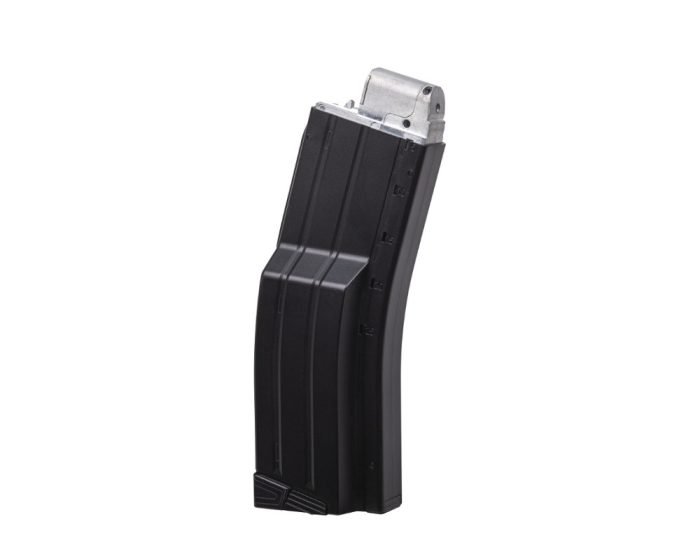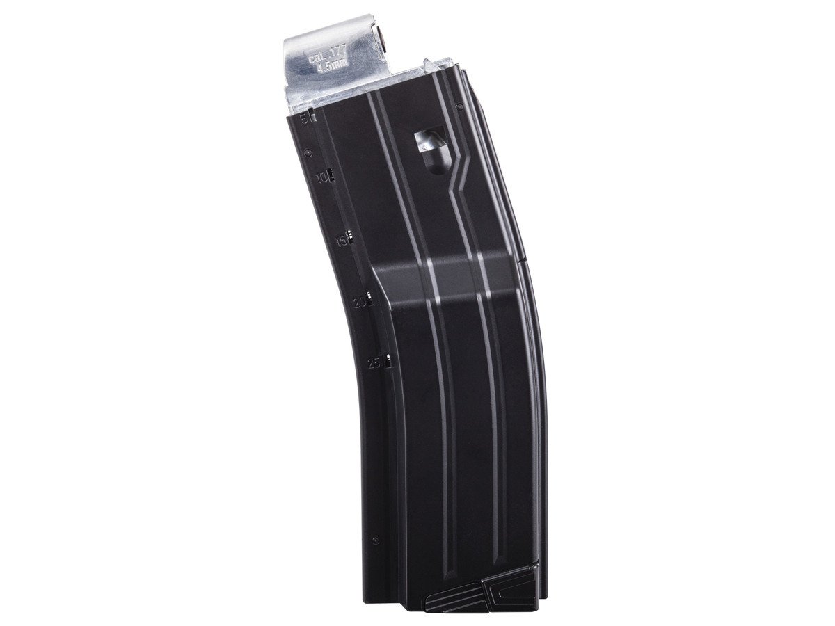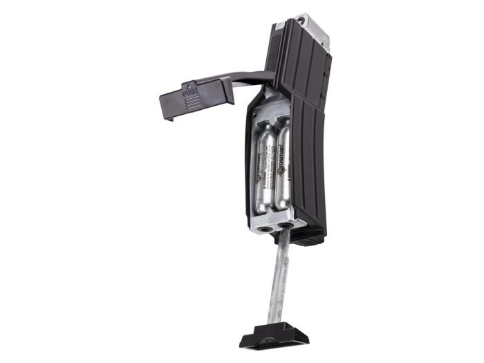 The Crosman QR-Mag will significantly cut down the time you spend reloading magazines! This quick reload (QR) magazine has a 300 rd reservoir with a built in speed loader that quickly refills the 25 spring fed rounds as soon as you run out! It is compatible with all DPMS SBR’s, the Bushmaster MPW, and R1 Full Auto.