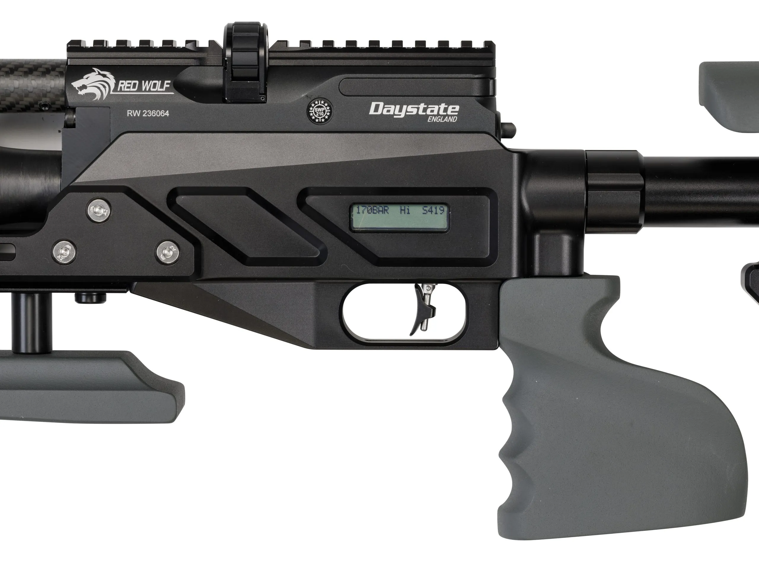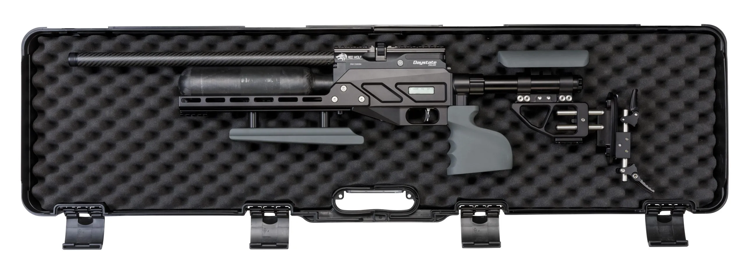 The Red Wolf Grand Prix builds on the core DNA of the Red Wolf and adds more adjustability to deliver the next level in competition shooting. The technical sophistication of the electronic action is coupled with a state-of-the-art stock developed by Precision Rifle Systems (PRS). An array of features including quick adjustment to the cheek rest, forend rail and full-length Picatinny rail, as well as a comprehensive range of accessories, bring every conceivable benefit to the shooter, whether faced with sitting, prone, kneeling or standing shots. In addition, the Red Wolf Grand Prix’s fully electronic action is matched to an electronic trigger that can be fined-tuned whilst remaining completely safe. A Liquid Cristal Display screen provides vital information on the rifle’s status, such as which of the three power setting is selected, remaining pressure, shot count and battery voltage.
