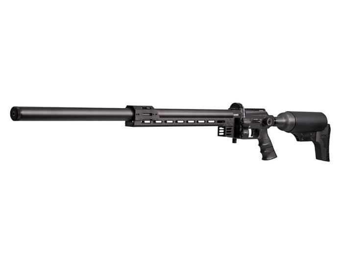 The dual angled pressure gauges on the block mean it’s always easy to keep an eye on the bottle pressure and the regulated plenum pressure, so you’ll never be surprised by low pressure leading to inconsistent shots. You’ll like how simple it is to add accessories with the 14.5″ Arca-Swiss forend rail with M-LOK slots, and the Picatinny scope rail gives you long range precision with its 20 MOA cant.