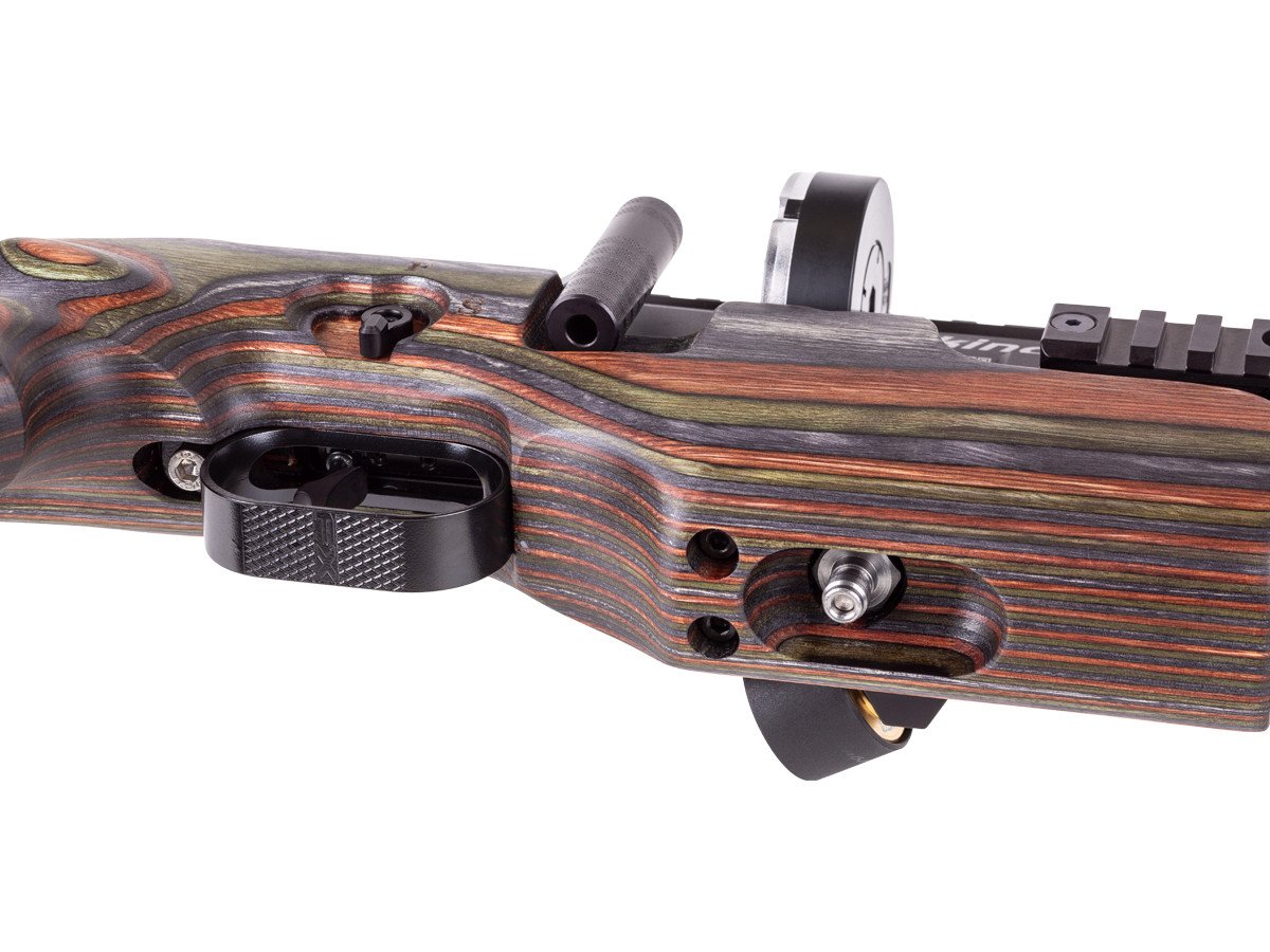 This air rifle gives you a premium GRS Green Mountain stock from the famous Norwegian company, so you get tool free adjustments like the adjustable rubber recoil pad and ambidextrous adjustable cheekpiece, plus the offset and angled ergonomic GRS grip. You get the flexibility to customize the tune for different uses because of adjustable features like the Quick Tune System for macro and micro adjustments to the hammer spring tension.