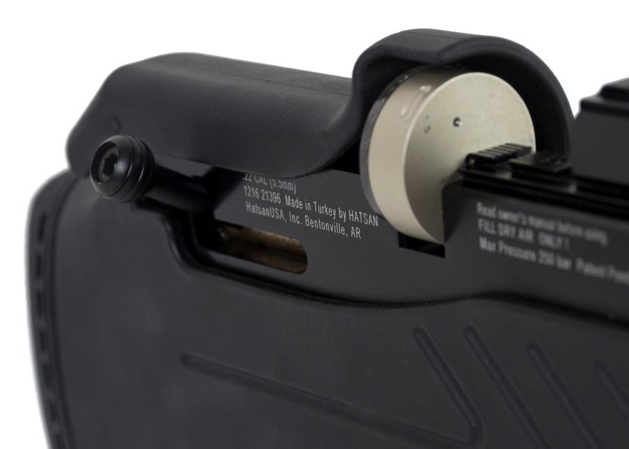 Detachable 14-shot magazine in .177 (4.5mm) and 12-shot magazine in .22 (5.5mm)