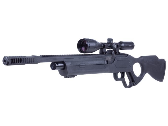 This AGD Exclusive combo includes the Hawke Vantage 4-12×50 and a set of UTG rings! The new Hatsan Vectis is a lever-action, magazine fed repeater. With a smooth lever action, follow up shots are no longer an issue. The lever action is built into the trigger guard of the stock, making it as smooth and stable as possible. Included are two magazines, fiber optic sights, and it also features Hatsans QE technology to dampen the report. The cylinder is capable of holding up to 2900 PSI, which is enough to sling rounds downrange at 900 to 1150 fps, depending on caliber. Weighing in at just over 7 lbs and at a length of 41.3 long, this is the perfect gun to take into the field!