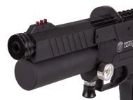 You’ll like the sighting options this airgun pistol gives you, because it comes with a removable and adjustable green fiber optic rear sight, and a red fiber optic front sight, plus a combination 11mm Dovetail and Weaver scope rail. You’ll also enjoy the storage space for the extra magazine in the bottom of the grip, which is textured to give you a firm hold no matter what conditions you encounter.