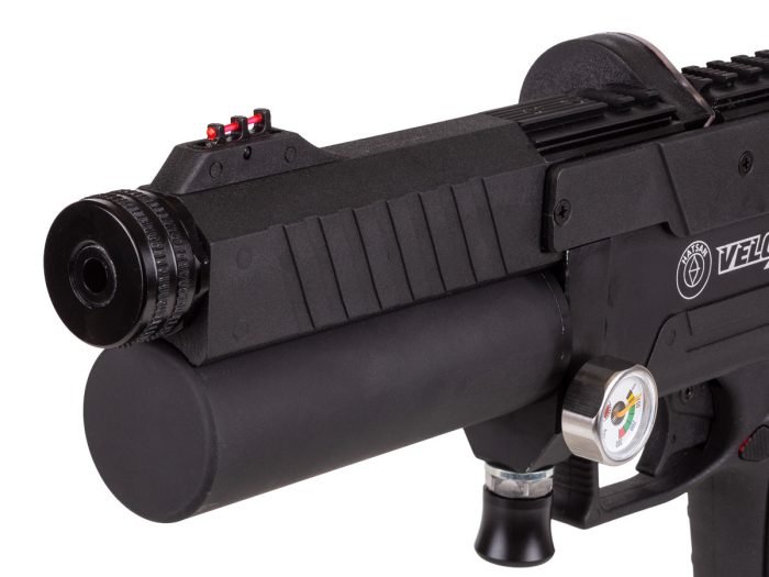 You’ll appreciate the accuracy you get from the Hatsan Velox because of the precision rifled and choked German steel barrel, and the fact that it’s shrouded to help steady the barrel and make the shots quieter than expected. You can reduce the sound of each shot even more because this air pistol comes with a 1/2 UNF threaded muzzle so you can attach a moderator.