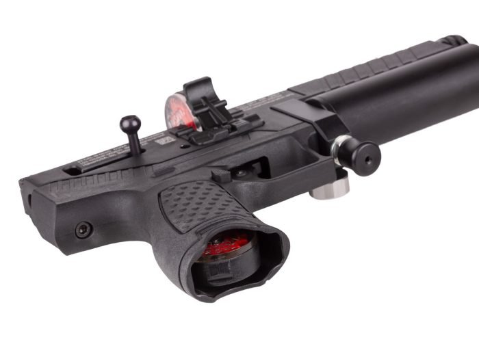 With this air pistol, you get semi auto action, meaning it’s perfect for shooting a series of targets or cans as fast as your reflexes allow when you’re target shooting or plinking. Plus, you’ll love how sharp the break is and how steady the pull is, thanks to the improved trigger system on this airgun. It’s so easy to use that it practically sets a new standard for semi auto PCP air pistols.