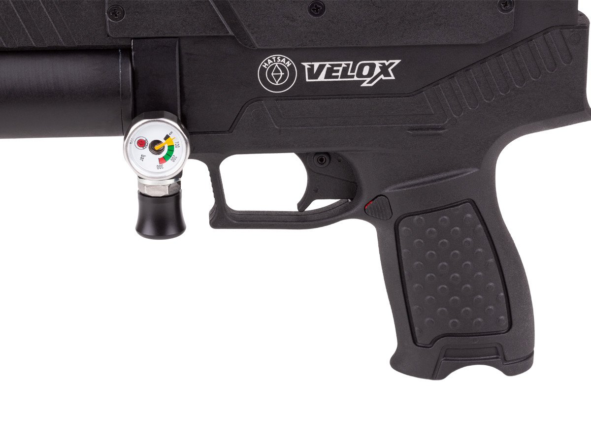 The Hatsan Velox gives you a light and portable semi auto PCP pistol built with the ideal combination of performance and value in mind. You’ll get power up to 12.6 fpe in .22 and 15 FPE in .25 and speeds up to 620 fps in .22 and 580 fps in .25 for the precision you need for endless days of target shooting and plinking fun and excitement.
