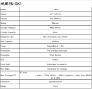 The Huben GK1 is a compact precision air pistol offering ergonomic handling, consistent accuracy, and durable construction. Perfect for target practice and casual shooting.