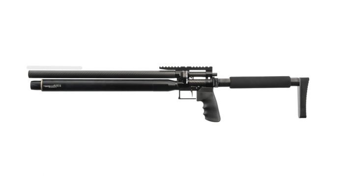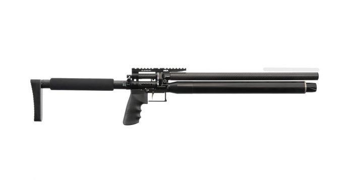 The New Element 2.0 is the latest version of the Element, possibly the lightest airgun out there for its size. Available in .22 and .25 cal, this new version now comes with a fantastic and extremely precise trigger and a new power wheel. Weighing less than 3 pounds, it is almost entirely made of carbon fiber – with folding stock and said weight, this airgun is extremely easy to move around with. Another interesting feature? It has a decocker, meaning you can have your airgun filled and loaded and decock the action without having to dry fire.