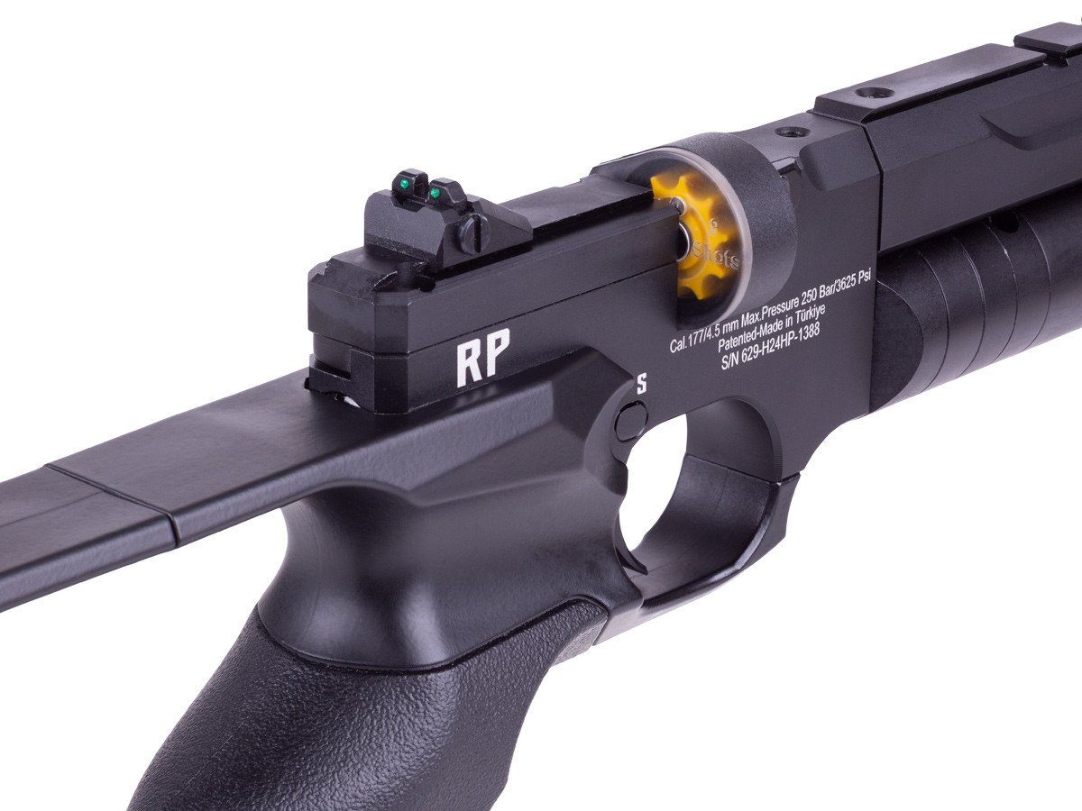 The Reximex RP gives you a special PCP airgun that you can switch from an accurate pellet pistol to a stable carbine style air rifle with the removable high quality synthetic stock. You get speeds up to 610 fps in .177 and 515 fps in .22 with lead pellets for fun and exciting plinking and precision target shooting.