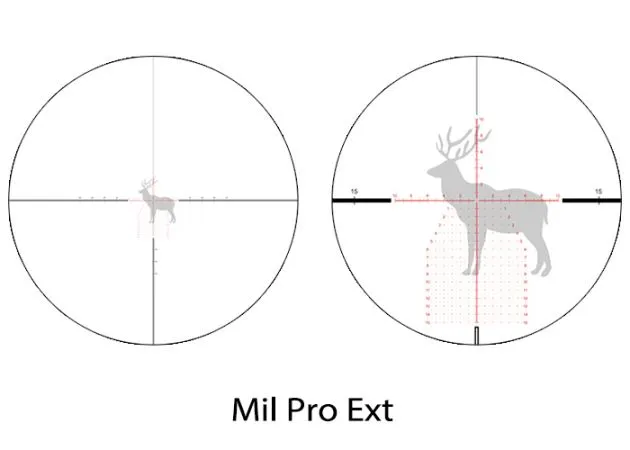 This Hawke scope’s optics are fully multi-coated, 21 layers of coatings for sharper and deeper renditions of the view. The Mil Pro Ext reticle is developed specifically for FFP scopes and offers aim points for all distances. It can be illuminated in red, in 11 brightness levels, which is powered by the supplied CR2032 battery.