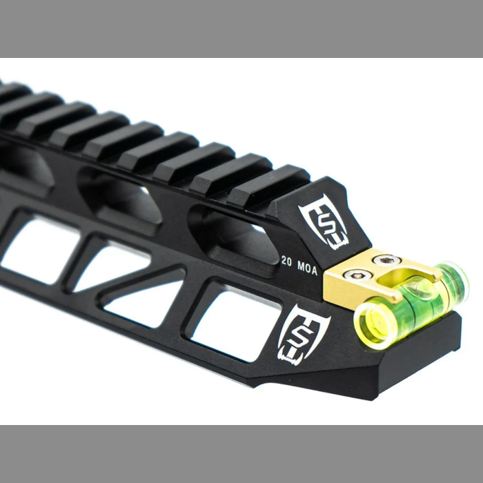 The bubble level at the rear of the rail allows you to check your alignment of your rifle and scope.