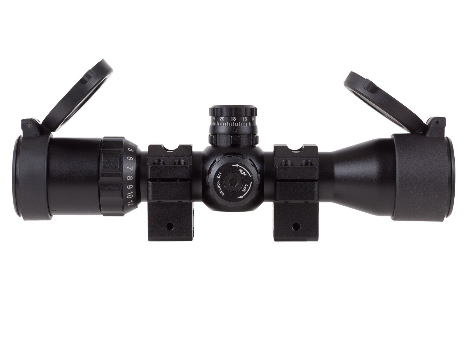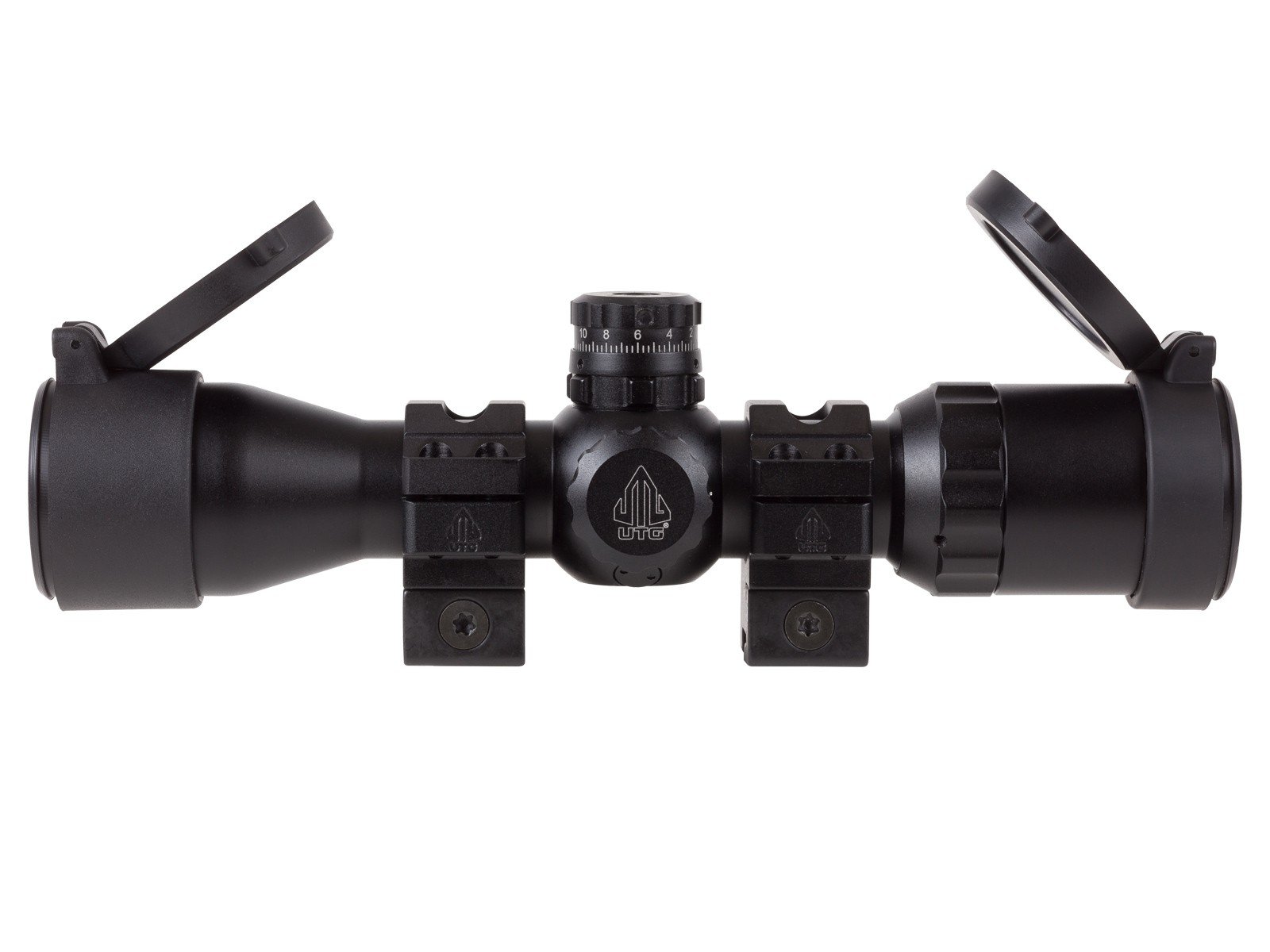 UTG BugBuster 3-12X32 Scope, Mil-dot Reticle, 1/3 MOA AO, 1″ Tube, Med. Dovetail Rings Built on TRUE STRENGTH Platform, Completely Sealed and Nitrogen Filled, Shockproof, Fogproof and Rainproof Reinforced Windage & Elevation Adjustment Components for Added Zero Retention 1 Inch Tube with Best in Class Emerald Lens Coatings to Achieve Maximum Light Transmission and Clarity Premium Zero Lockable and Resettable Target Turrets with Precise 1/3 MOA per Click Adjustment 205mm Length (8.07″) Eye Relief: 4.3″ – 3.3″ Exit Pupil: 10.6mm – 2.7mm Click Value @100 yards: 1/3″ Classic and Proven Mil-dot Range Estimating Reticle Side Wheel Adjustable Turret for Parallax Adjustment from 3 Yards to Infinity Includes2″ Sunshade, High-Quality Flip-open Lens Caps, Cleaning Cloth and Medium Profile Torx Screw Locking Dovetail Rings